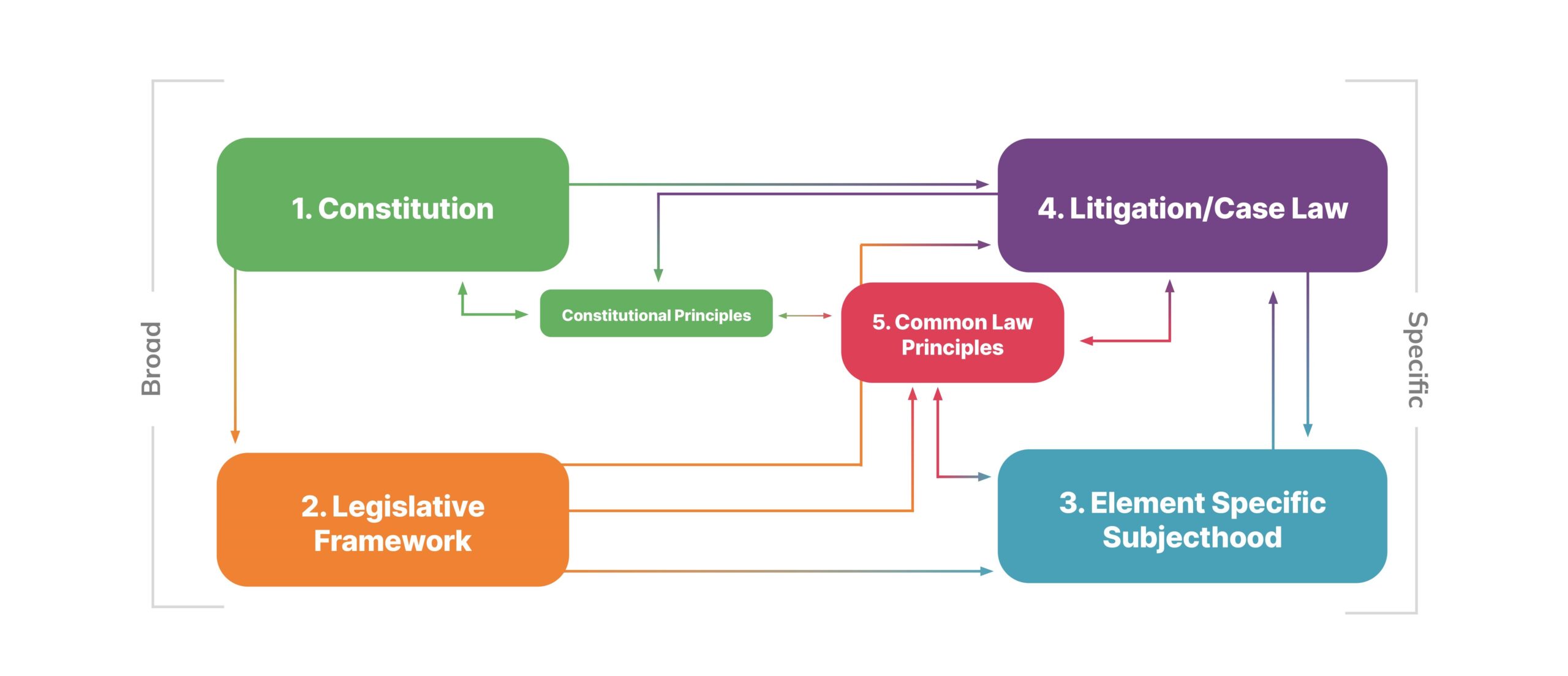 This ground-breaking report maps out the variety of different legal instruments which have been developed globally in the pursuit of realising Rights of Nature. Classifying the legal developments has always been tricky, and the approach used in this report is to combine both the type of law (e.g legislative, local law or declaratory only) with the scope of the rights and subjecthood granted. The taxonomy also allows for showing the interrelationships between different instruments and mapping out how the law has developed in a particular jurisdiction. It taxonomises into 4 primary types of instrument: Constitution, Legislative Framework, Element Specific Subjecthood, and Case Law.